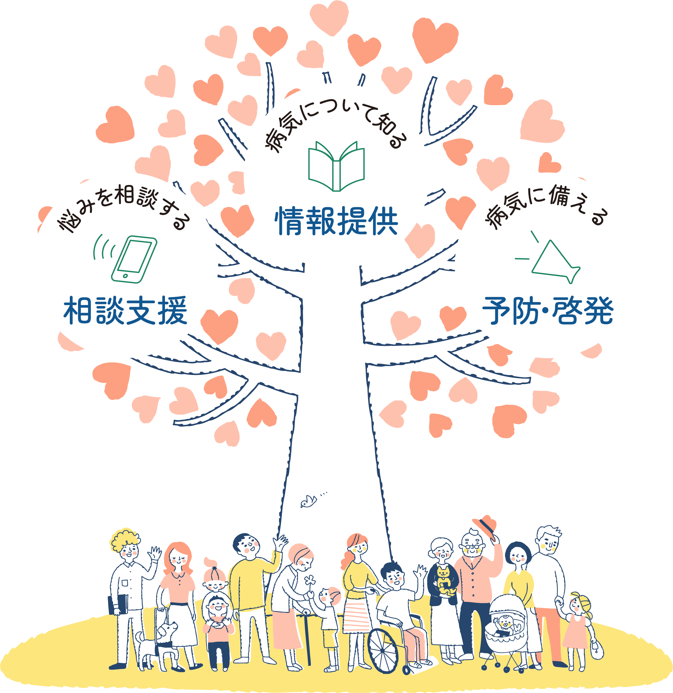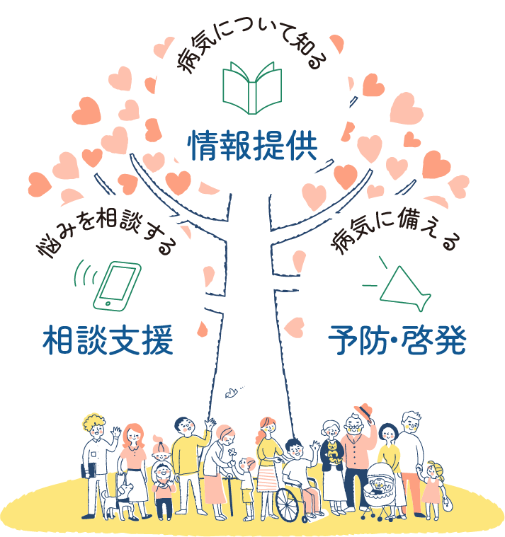 浜松医科大学医学部附属病院では「相談支援」「情報提供」「予防・啓発」等を通じて、静岡県内にお住まいの脳卒中・心臓病等の患者さんやそのご家族に対してのサポートを行います。
